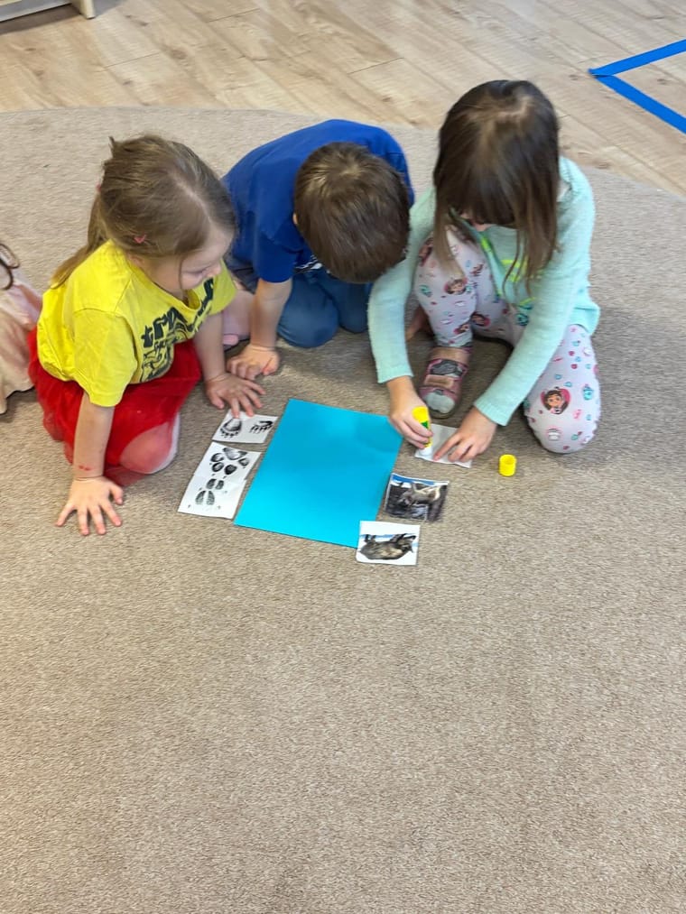 W ramach projektu „Małe rączki - wielkie talenty” współfinansowanego z środków europejskich zostały przeprowadzone zajęcia ekologiczne pt. „Tropem leśnych zwierząt”. Zajęcia zostały przeprowadzone z wykorzystaniem Magicznego Dywanu. Dzieci brały udział w interaktywnych zabawach ruchowych, rozpoznawały leśne zwierzęta i ich tropy oraz naśladowały sposób poruszania się zwierząt. Zajęcia rozwijały koordynację ruchową, spostrzegawczość oraz kształtowały postawy proekologiczne i umiejętność współpracy w grupie.