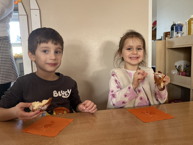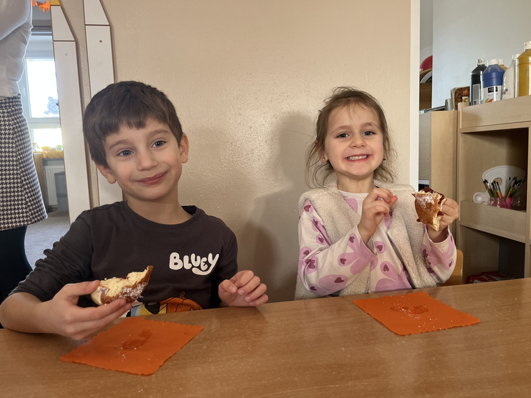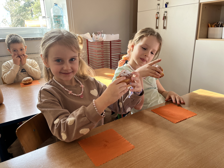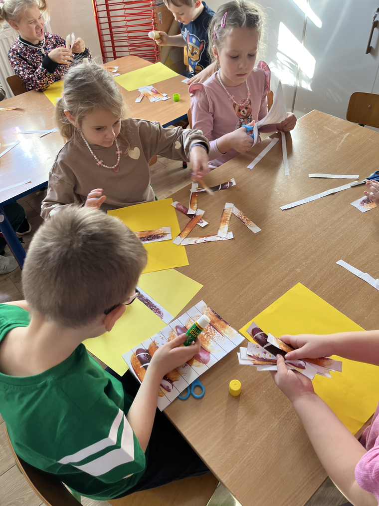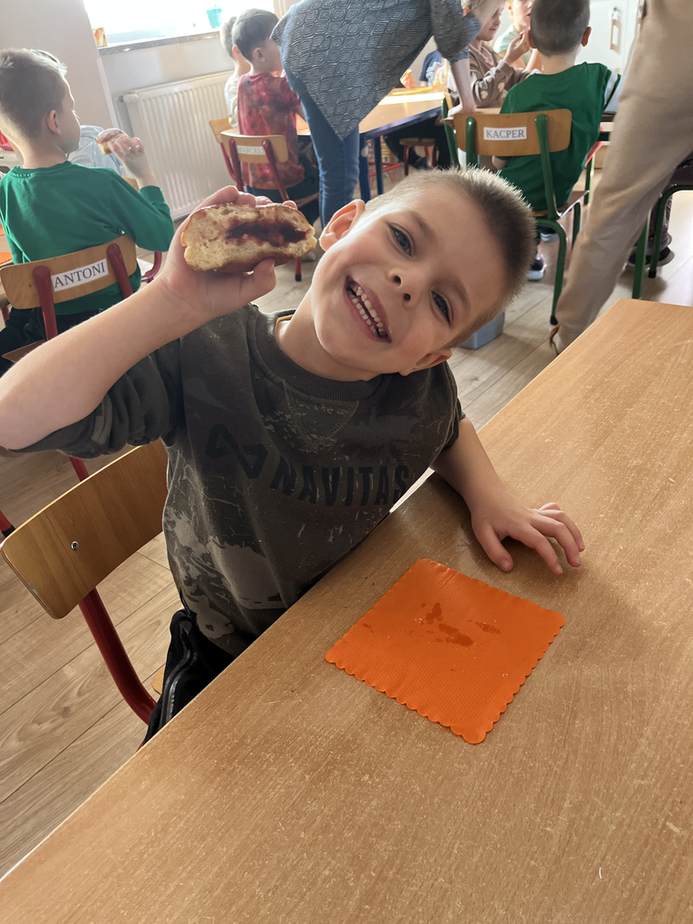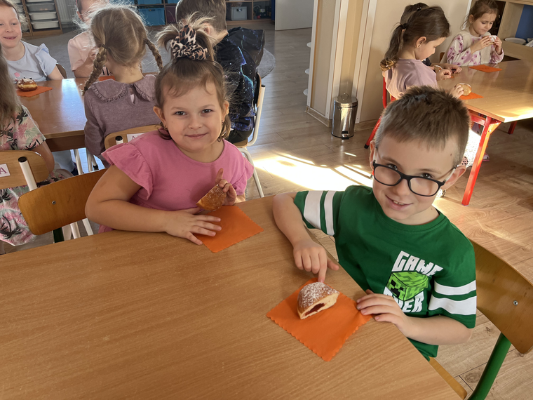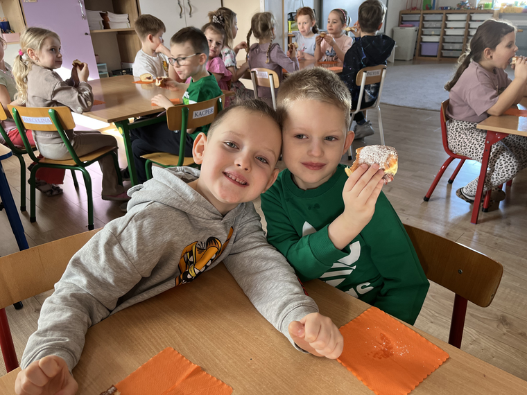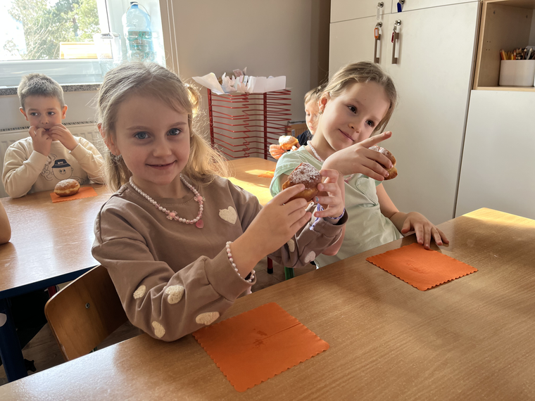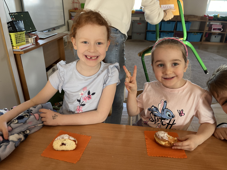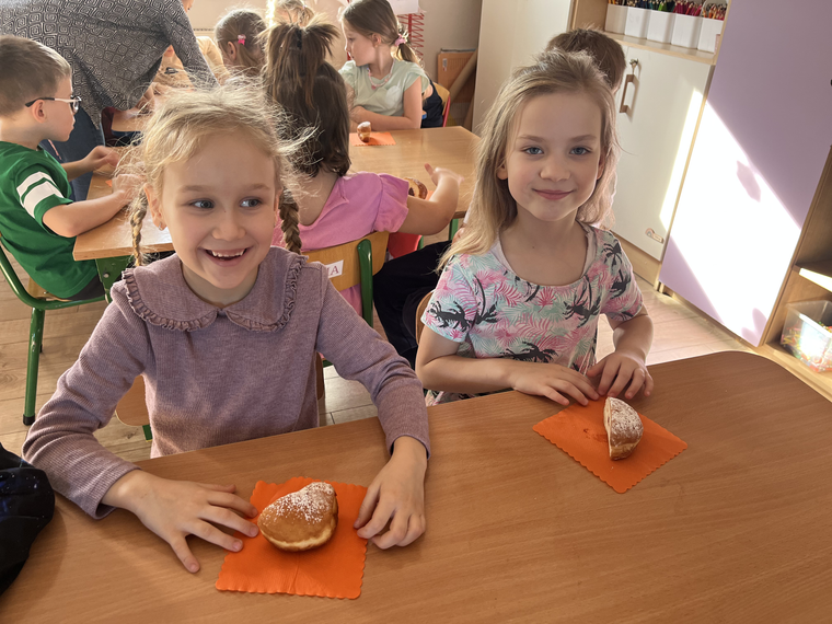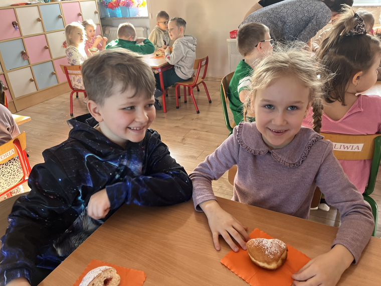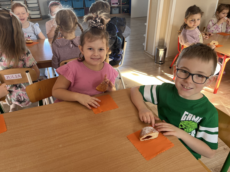 W naszym przedszkolu świętowaliśmy Tłusty Czwartek! Dzieci z radością spróbowały pysznego pączka, a następnie wykonały kolorowe prace inspirowane tym słodkim przysmakiem. Było dużo uśmiechu, kreatywnej zabawy i cukierkowej atmosfery. To był naprawdę bardzo smakowity dzień!
